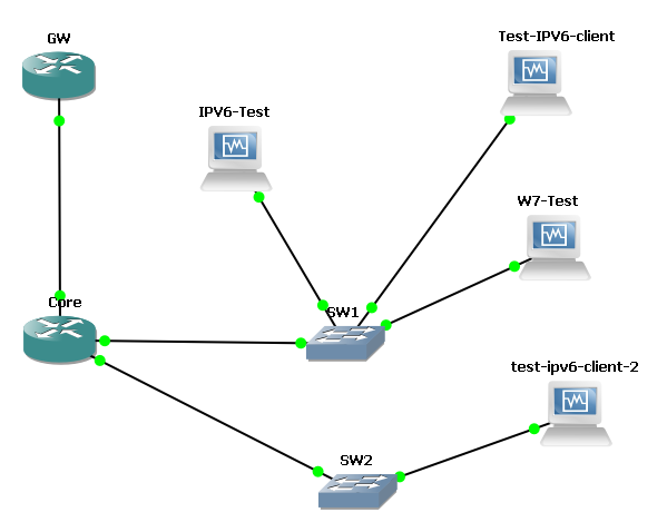 Notice that I have two switches in between the devices and the core. This mimics L2/L3 switches you may have in a real situation.